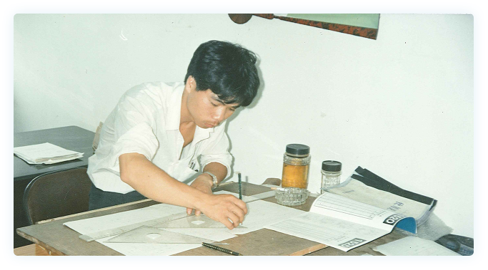 1990年,年輕的李海周懷揣著(zhù)夢(mèng)想,只身來(lái)到深圳拼搏。期間,有幸遇到了他的第一位模具師傅——來(lái)自北京的老工程師江祥豐。