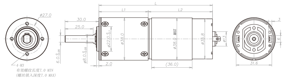 Φ38mm 行星減速箱(MD版)規格書(shū)